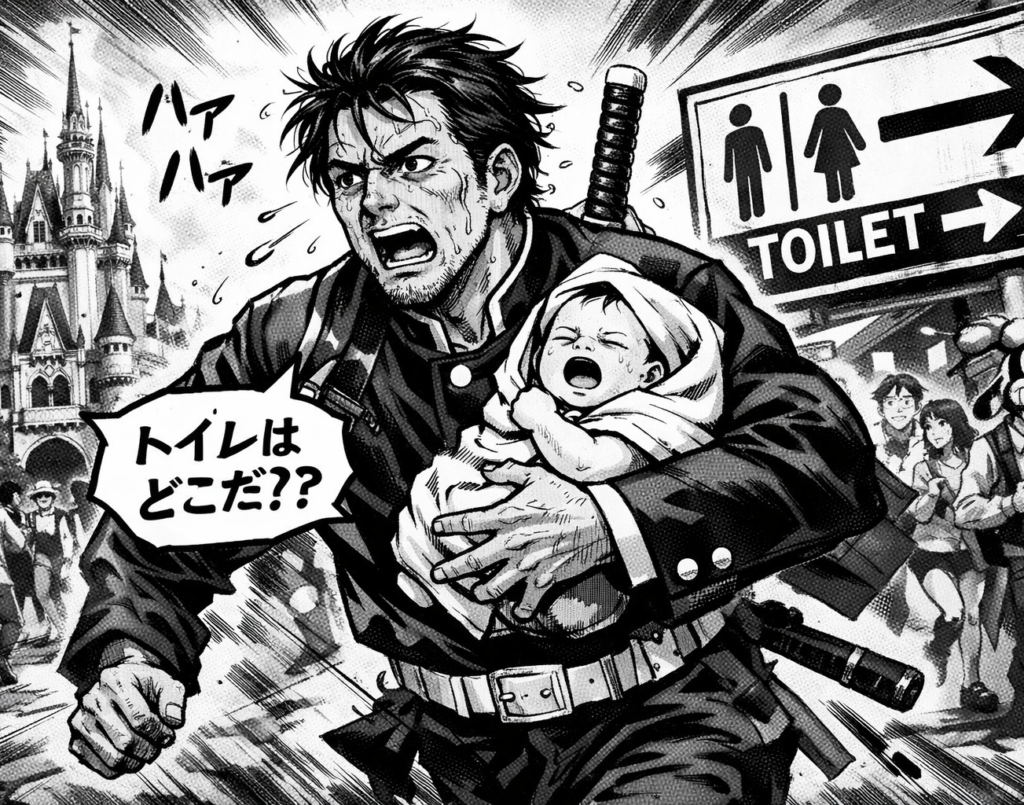 ととはディズニーランドの地理に疎いため、トイレを探し彷徨う。