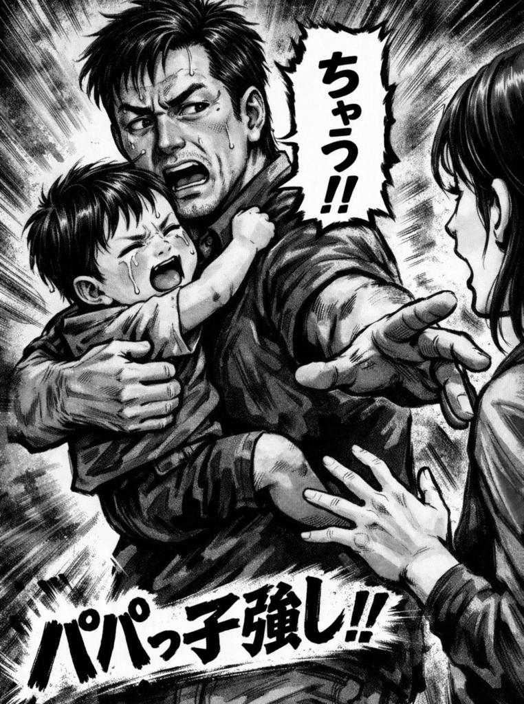 さく坊「ちゃう!」と言ってしがみついてきた。