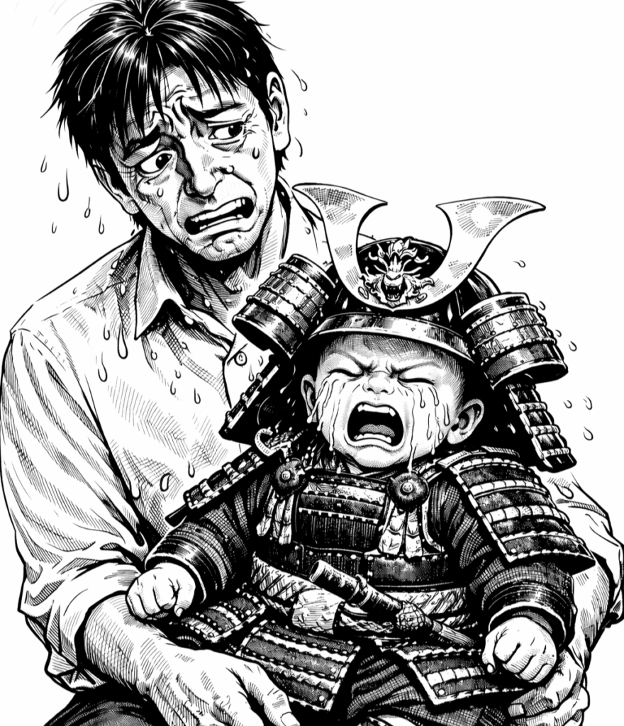 侍さく坊は全く泣かない。